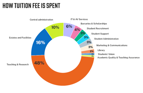 This includes costs involved in curriculum development, review and learning technology. These areas play a key role in ensuring high quality and standards at the University.